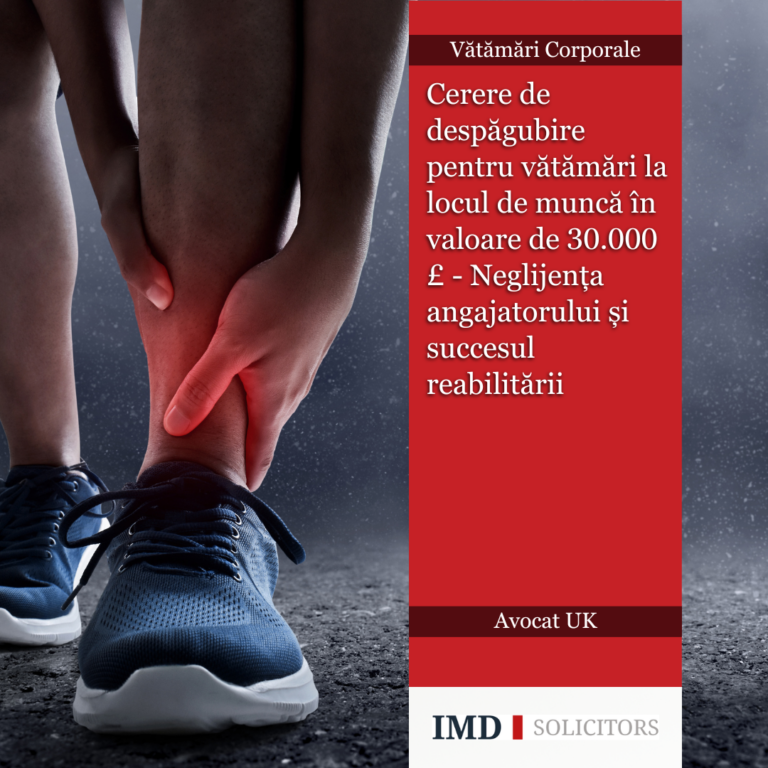 Despăgubire de 30.000 £ pentru vătămăre la locul de muncă